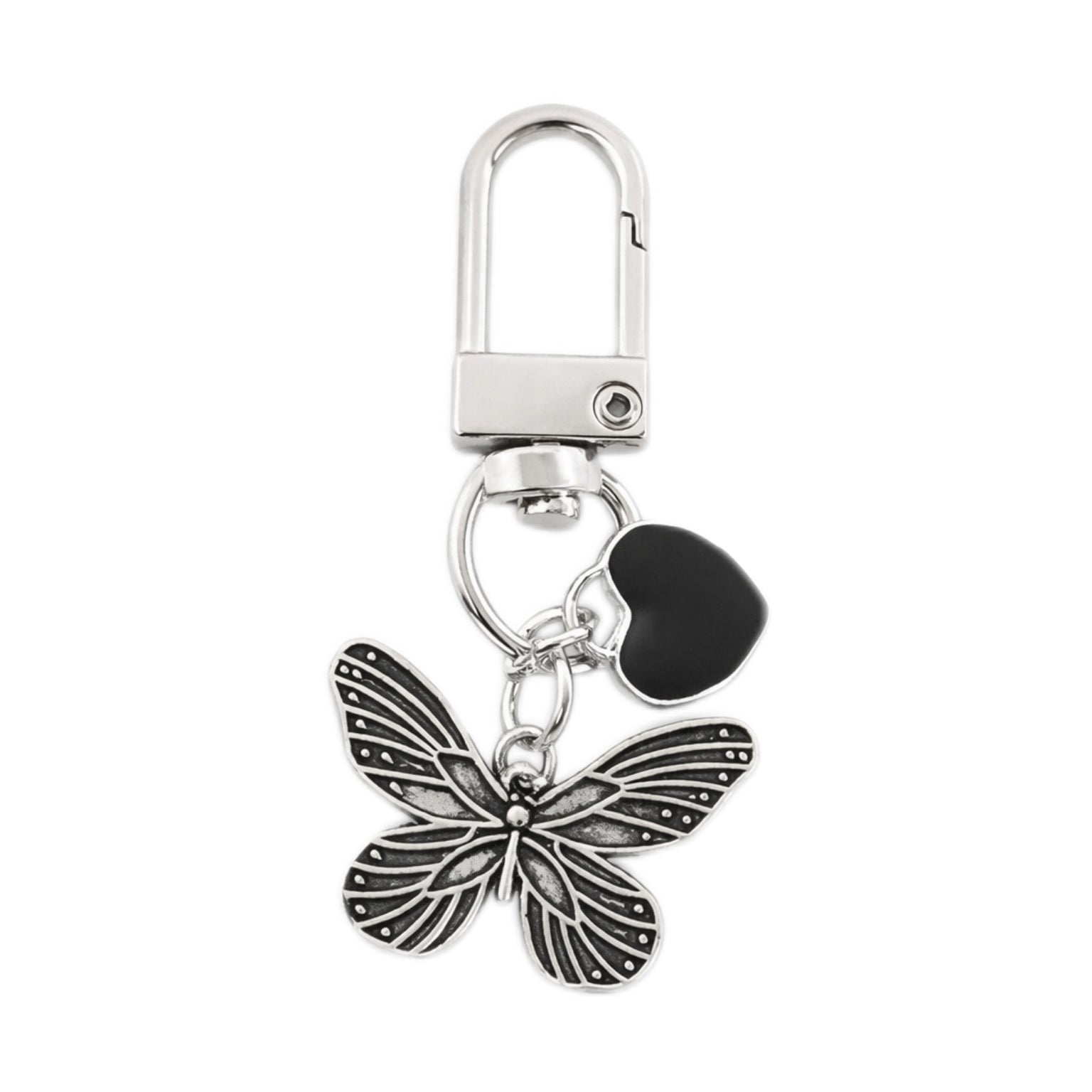 Un porte-clé décoratif en métal argenté, agrémenté de charms modernes et esthétiques : papillon, cœur strassé, dog balloon, cristaux colorés… Un accessoire lumineux qui personnalise instantanément sacs, clés ou étuis.